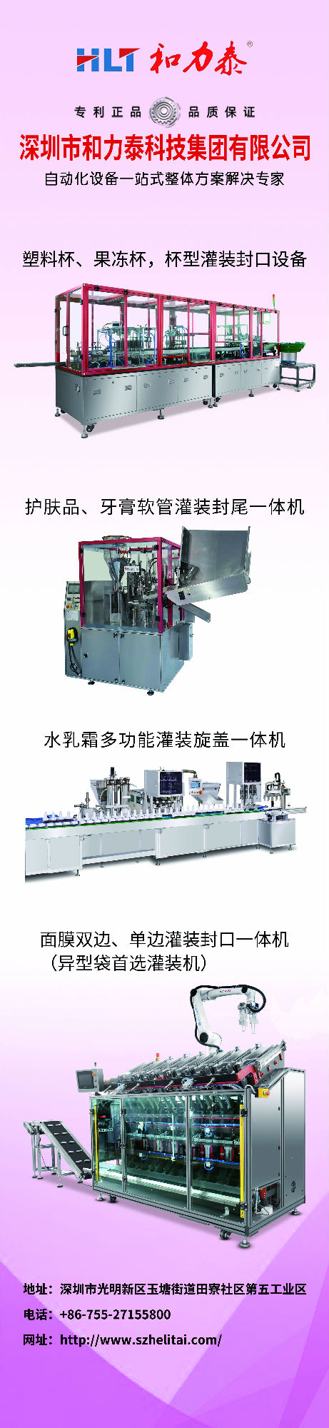 和力泰立式雙腔異型袋面膜灌裝壓碼打碼封口一體機