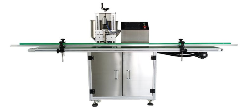 自動或人工上瓶→自動灌裝→人工放內塞/放外蓋→自動旋蓋→成品輸送線