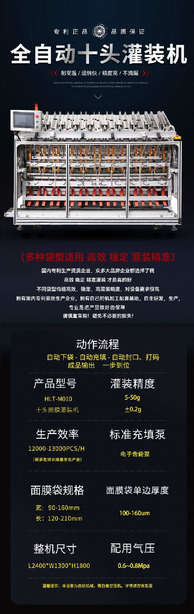 1. 專利產品HLT-M10-X2械二類設備、HLT-M10-Z妝字號設備 2. 操作簡單方便,故障可一鍵解決 3. 生產速度快,極大提高生產效率 4. 節省人工